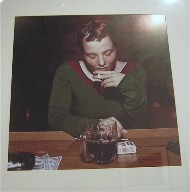 Portraits of people at a bar, nursing drinks, looking into space, looking like regulars from Sarah Stolfa caught my eye first. She is one of 18 students in the Drexel University Senior Photography Thesis show at Nexus Gallery. Stolfa’s people were filled with individuality, confronting a familiar milieu. We see people in the movies in these poses, with these affects, but never in a photograph. (image, “Joanna”).