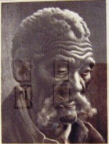 Other highlights were “Aaron,” an outstanding portrait of a heavily lined face with corrugated forehead by Thomas Hart Benton, and Red Grooms’ “Portrait of Fritz,” a reminder of that underneath his cartoon exterior, Grooms is a German Expressionist. A pair of disturbing magical realist drawings from Pavel Tchelitchev and John Wilde are both recent acquisitions. Nearby, Wilde’s notebook documenting his nervous breakdown as a soldier in World War II is shown here for the first time (right, “Aaron” by Benton, a 1941 lithograph, about 13 x 10 inches).A trip through time and taste