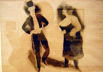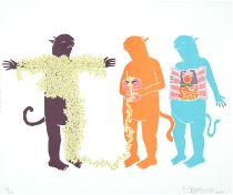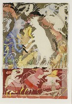 Nilsson’s playful psycho-sexual watercolor is right near three terrific local items from the 2004 Philadelphia Print Collective collection–Ben Woodward’s lithograph “Whatever it Takes,” Charles Burwell’s silkscreen “Variations,” and the Kate Abercrombie mentioned before (above left, Burwell’s “Variations;” Burwell shows at Sande Webster Gallery; and right, Woodward’s “Whatever it Takes”; Woodward shows at Spector Gallery).