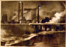 A nearby group of coal and industry related prints and paintings also caught my eye, including “Koppers Coke” by Victoria Hutson Huntley, Willie Birch’s “Promise Land” (which was a gift of the Brandywine Workshop in 1989, by the way), and Alfred Leslie’s “Coal Pile near the Ohio River” (left, “Koppers Coke” lithograph).