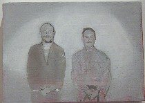Keyser’s “Big Day” (left, 14 x 70 inches) is a grisaille painted snapshot of himself posed with his martial-arts instructor, both dressed for combat, no background to speak of, and we get to make up the story. This is not a funny story (clearly Keyser thinks it is but we all know that artists are not to be trusted about their own work) but rather the story of passing a test or hurdle, with its anxieties and its sense of responsibility to mentors and parents. This piece is so much more personal and meaningful and unexpected compared to his glib grid of tongues in cheeks.