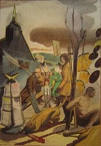 The shift in political power after the fall of the Berlin Wall is the subtext of many of these paintings, which project a shaky, threatening world. The work for the most part reflects the socialist realism approach of the Leipzig Art Academy, but then takes those passe techniques out of the realm of propaganda and into the realm of disquieting, shaky milieus (image right, David Schnell’s “Planks”).