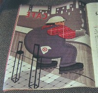 If the work is spectacular, we’re more in the sphere of the Target ads in this week’s New Yorker (top, Robert Risko’s floaty construction worker).