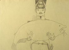 One of Artblog’s favorite artists, Matthew Fisher wrote to say he was in two group exhibits, “Honeymoon with Romeo” in Basel, Switzerland at Groeflin/Maag Gallery and “Sasquatch Society” in Chelsea at Sixty-Seven Gallery. Fisher’s drawings and paintings of disaffected-looking poet-soldiers in Bismarkian get-up have appeared several times at Spector Gallery — in the Great Re-Masters’ show and in a solo exhibit in the back space where he was paired — perfectly — with Randall Sellers in the front. See post on the latter show here.