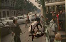 But Meyerowitz, Eggleston and a few others (including Eliot Porter in the ’50s before them) found their way to color and stayed there. Color was a good fit with the subject matter they were interested in-street scenes and people for Meyerowitz, socioeconomic milieus for Eggleston, and birds and nature for Porter. These are things that require a certain photo-verite and make real-world color the perfect choice. (image right is Meyerowitz‘ “Fallen Man, Paris”)