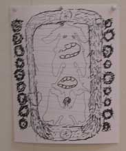 And on the way into and out of the space, a couple of Lowe drawings that are a surprise. They had that satanic emanation thing going on that reminded me of the heavy metal show “scarab” that some of these folks participated in at Project Room a few years back.