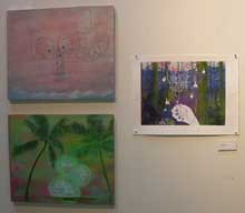 McJilton told me that the collaborative painting by Takeda and Swenbeck was done with the use of a projector. Somehow projecting light and image as a technique for making a collaborative work fits for two artists whose works are about emanations of monsters and witches.