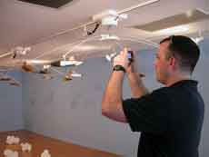 (image is Kirkland taking a picture of Shelley Spector’s installation at the Painted Bride. He loved the work and it’s the only picture he took. As Libby said, Bren was in charge of the camera. See bigger.)