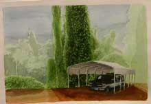 (image is Haynes’ piece with the carport housing what looks like the family truck)