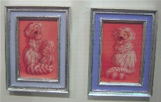 Also at Littlejohn, Susan Chrysler White’s “Sweet Affliction” beaded curtains gone wild and portraits of the beads floating in front of a modulated pink background stole my decorative heart. The glowing pink background reminded me of the glowing backgrounds behind high school portraits.