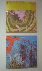 Most exciting, we got a swell preview of Rebecca Rutstein’s new work from her Hawaii residency. Her exhibit opened a couple of days ago, and judging by what we saw at the AAF, it’s not to be missed–glorious color, maps, thoughts about place and the path of life (above image, top, “quiet pandemonium” and bottom, “blue hawaiian”).