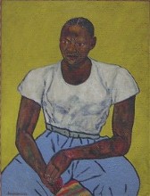 The show curated by Sue Canterbury for the Minneapolis Institute of Art includes some local additions, the most outstanding being his 1945 portrait of his friend James Baldwin, the novelist and civil rights activist. Baldwin, 23 years Delaney’s junior, is the subject of a number of portraits in the exhibit, but the PMAs is a knockout, acquired in 1998. Showing him that a black man could be an artist, Delaney was a mentor to Baldwin, PMA Curator of Modern Art Michael Taylor said. Although you may well have seen the PMA’s Baldwin portrait hanging in that hallway near the art rentals, seeing it in this context is spectacular (left, “Portrait of James Baldwin”).