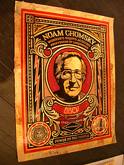 The works-all of which use a strong central image of an iconic head-evoke everything from postage stamps, playing cards and cigar-box decor to antique revolutionary posters from the ’60s and ’70s. Fairey’s poster children are counterculture heroes, from politicians and thinkers to rock stars: Lenin, Martin Luther King, Tupac, Noam Chomsky, Joe Strummer, Joey Ramone, Angela Davis, Jimi Hendrix, Slick Rick, Jam Master Jay, the young Johnny Cash, LL Cool J.