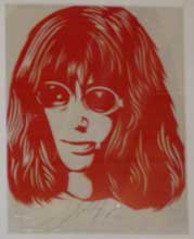 A series of 16 “Rubylith” images offer a sense of Fairey’s work method. These red acetate film cutouts are a byproduct of the screenprint process-they’re not prints themselves-and the framed, high-contrast Warholian images have no words or message.