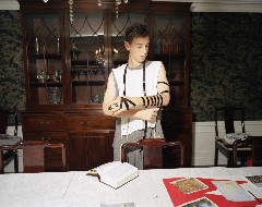 The large scale that Stern chooses for her images puts these photos in the same class as the possessions that Stern is photographing along with the family. There’s a sense here of a European past, a desire to use the possessions–ritual and secular–for ballast and roots.