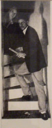 Our town’s artists make a strong showing. Facing each other across the space are a fantasy art history drawing by Rob Matthews and a suite of four etchings by Astrid Magdalen Bowlby. Both artists are artblog favorites. Matthews’ drawing updates the PMA’s painting by Charles Wilson Peale of his sons climbing a stairway looking back over their shoulders. Both works (Peale’s and Matthews’s are tours de force).