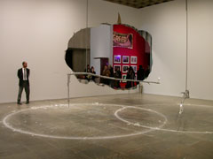 Another pic of Urs Fischer’s punched out walls. Note the repeat O’s in the wall and on the floor. Could be a candidate for next O show.
