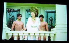 The casting couch award goes to Francesco Vezzoli for his Trailer for a Remake of Gore Vidal’s “Caligula.” Among the stars Benicio del Toro tenderly holding the fluffy white lap dog while decked in full gladiator regalia; Courtney Love (don’t miss her; she comes way at the end), Helen Mirren, Karen Black (for a wonderful scream), Michelle Phillips. Best tag line in the trailer: “Beyond Sensuality there’s Sexuality. Beyond Sexuality there’s Perversity. Beyond Perversity there’s Caligula.” We don’t get why Vezzoli’s in the show because he’s Italian and he lives in Italy. Isn’t this an American art show?