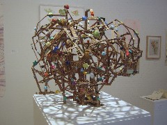 Ryan’s cool and elegant portrait, that also brings to mind textbook images of atoms with their whirling parts, is right near Thomas Vance’s Springsprung (second photo from the top of the post), also a portrait of an atom–or of a head on lsd–merging high-tech thoughts with humble materials, elegance with lumpiness.