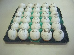 Our cascarones donation this year is all about the internet–and us as usual. Like who didn’t know that our lives these days are all about the internet? Here’s one of my pictures of Roberta and my eggs, hot off the presses. You can find my pictures at full size here (libby’s) and roberta’s set here (roberta’s).