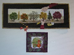 A Seasonal Spectrum (top) and A Quirky Attraction by B.J. Adams, free motion machine embroidery; these get high points for their incredible technique and the texture the layers of machine stitches provide