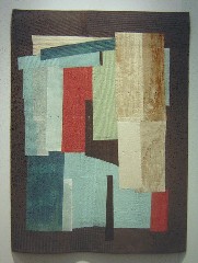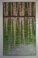 Continuing the theme of art movements migrating into fiber, we have impressionism, most spectacularly in Karen Perrine’s Still Water quilt at Klein. Also Deborah Anderson’s Fall Rain/Rain Fall picks up some impressionism and pushes it through some Asian, reductive seive to come up with her evocative Fall Rain/Rain Fall.