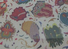 It’s pattern and texture that rule in the world of fiber. KathyAnne White’s texture and exuberant shapes were the bar-none favorite of the troupe of women at the Art Alliance. Even when fiber goes digital, which much of it has, with digital photos applied to fabric, digital weaving and knitting, digital embroidery output, etc., pattern and texture distinguish fiber from most painting and much sculpture.