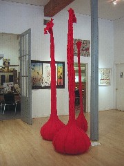 On the sculpture front, I’d have to send you to Snyderman all the way. Mi-Kyoung Lee’s large and small red stretch flowers, Piper Shepard’s filligree of fabric, Lace-Like, Hisako Sekijima’s plant-fiber sculptures and Lewis Knauss’s grass-inspired landscape were standouts. But there was more of interest–so much more that I really didn’t digest it all.
