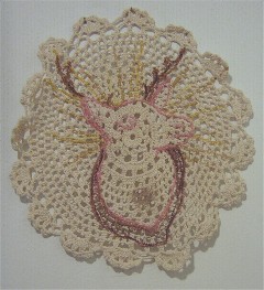 Deer Head Doily by Shannon Robinson, doily and machine stitching, 2005