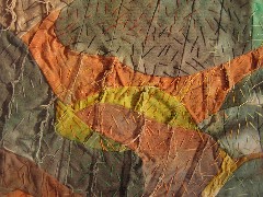 Jeanne Williamson, Orange Construction Fence Series #28, monoprinted, hand painted, hand stamped, machine stitched