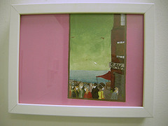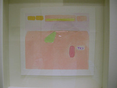 Alex Paik’s abstractions of video game scenes are even smaller than Stewart’s. The pastel watery-ness of the medium has a sketchy quality. Without the zing of Paik’s acrylic, unnatural color choices, this series seems to be part of a thought process rather than a final product. However, I did think there was something pretty amusing about TKO, with the referee and fighters looking like shrubs in the abstracted ring.