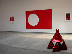 Donald Judd, left (can you believe it?). Right is Heaven/Hell by Lisa Beck. Circles and squares predominated in the red show.