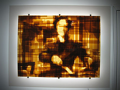 Khaisman seemed to burst on the Philadelphia art scene not much more than a year ago with his “paintings” of flimsy brown packing tape on light boxes. He was a highly celebrated conceptual architect in Europe through the 1980s, and there’s a hint of non-English syntax in the titles of a couple of his paintings. This round, Khaisman has made the plaid grid more prominent, but the subject matter remains relationships. The simplified faces suggest we all are living scripted lives.