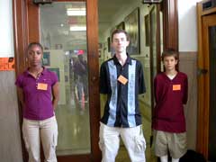 Cooke art teacher, William Casey, and students Brianna and Jason who are acting as security guards for the CMA
