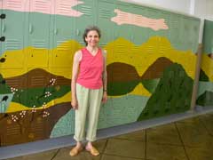Diane Pieri with lockers painted in the manner of Japanese landscapes