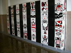 Also remarkable are the art installations in Cooke’s upstairs corridors, where banks of unused student lockers have been taken over by students and transformed into landscape and totem paintings. These surprising and colorful works take the edge off the institutional nature of the big school building that’s home to 800 students.