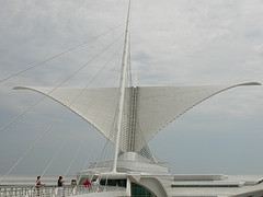 Santiago Calatrava’s building for the Milwaukee Art Museum. The wings are open here, but close at noon every day. More photos at my flickr.