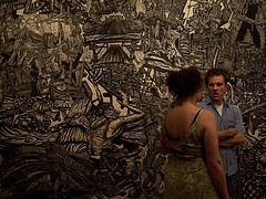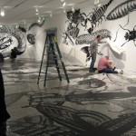 Saturday’s free The Shirt Off ‘Yer Back event at Space 1026 offered a double freebie–Cannonball Press was there with a tiny little press, printing woodblock prints–you supply the t-shirt (if you didn’t have one, they’d sell you one for $2). And Space 1026 supplied silkscreen prints for those who preferred.