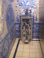 Six bathrooms, six different artist commissions, all made in the Kohler plant. We saw five bathrooms. I’m going to give you some photos and captions and leave it at that. If you’re ever in Milwaukee, make the trip north (about one hour’s drive) to Sheboygan to see the Kohler Arts Center. It’s terrific. You can also tour the Kohler plant, in Kohler,WI, Mondays through Fridays, and I understand that’s a fabulous tour.