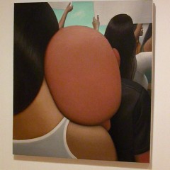 I don’t have a lot to say about it but the paintings I found most interesting had less to do with photography and more to do with interpersonal relationships. The artist used one composition with a bald-headed man leaning on a dark-haired woman’s shoulder several times and in several slightly different ways. Each painting was super and spoke about the space between them and also had playful references to art (in one the man’s head goes flat and becomes almost a pink lozenge…in another the woman’s hair becomes an almost Leger-like stream of dark water. More images in my flickr set. The show’s up at D.C. Moore to Oct 7.