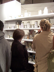 Each confession was documented and given an original number, and, after processing, placed into a clear glass mason jar. The confessions were then set onto a shelf built into an opening in the wall, which allowed a view of people on the other side, peek-a-boo style. Most of the confessions were anonymous, but there were a number of them bearing an author’s signature. The length and nature of the confessions varied greatly, from the more sordid guilty recount of a sexual encounter, to an empty cigarette carton and an angry note about the artist’s “arrogance” that he be worthy enough to receive a stranger’s confession. Anger recurred more than once at the “invasion of privacy;” one of the boxes, on 21st and Pine, was destroyed, with all of its contacts removed – Roberta and Libby and I spoke about how someone must have confessed something particularly awful or involving a worried outside party, and then wished to retract the information contained therein.
