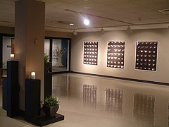 Roehrig put candles and plants in the space to accentuate the memorial aspect of the exhibit. It also lent a homey touch to what is a large white-box gallery.