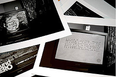 Major part of the installation is the contact sheet collages that appear on the walls. Still images of the steady stream of terrorist images culled at random from what came into her house via tv.