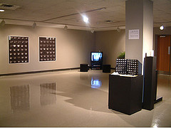 Installation in the gallery at Seton Hill. The video monitor ran a collage of images with a voice over