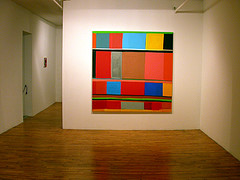 All semester long up at Tyler where we’re co-teaching a class with Frank Bramblett we’ve been hearing the name Stanley Whitney in the same breath as Hans Hoffman. Whitney teaches at Tyler although he’s on sabbatical. We saw his show at Esso and now we want to meet him. We loved the sag in this painting’s grid and his juicy paint and pop-eye colors. Jujubes on the canvas. If Wayne Thiebaud painted abstract he’d make bon bons like this.