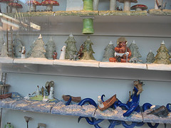 The window reminded us a bit of Bill Lohre’s window installation last summer at Spector Gallery, also storybook art, with innocence and fantasy. Both artists give you lots to look at.
