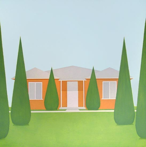 Salomon Huerta showed some paintings of fruit-colored suburban landscapes, devoid of humanity. I don’t know if this particular one was in the mix, but it gives you the idea. All of these images I grabbed off the internet.