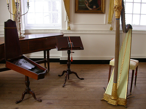 The Powel House music room with the Radio Shack transmitter on the music stand. Sounds like harpsichord music but it’s really steel string guitar.