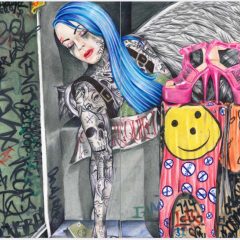 Business always wins in these mural issues. Although some people may squawk when new buildings obscure old murals, the new buildings always take precedence. Even the original Sidney Goodman I Contain Multitudes lost to progress and the Red Cross. The new building is up, and the Red Cross, with some arm twisting and money from Mural Arts, acceded to putting up a smaller version on the front of their building. But it’s not only less than a quarter of the size of the original, it’s thoroughly diminished in punch and quality–a nice object lesson in the importance of scale and background to a work of art. (The original mural is still on the wall, hidden by the building, and some day, someone will discover it, perhaps, and say look at this amazing painting that’s been covered over by time and the changing city).