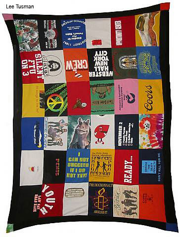 Tusman sends out occasional email newsletters about what he’s up to. This morning I got one about a cross country bike trip he’s on with its ups and downs (bike break-downs, unexpected camp-outs, passing through super-small towns, emergency room visit for stitches to a scraped hand, etc). Things that struck me about Tusman back when I met him in 2005 and wrote about him were his energy, earnestness and openness to new things. Well, two years later the self-taught artist whose work is quilts, clothing and toys made from found t-shirts is apparently charging along with the same energy and enthusiasm.